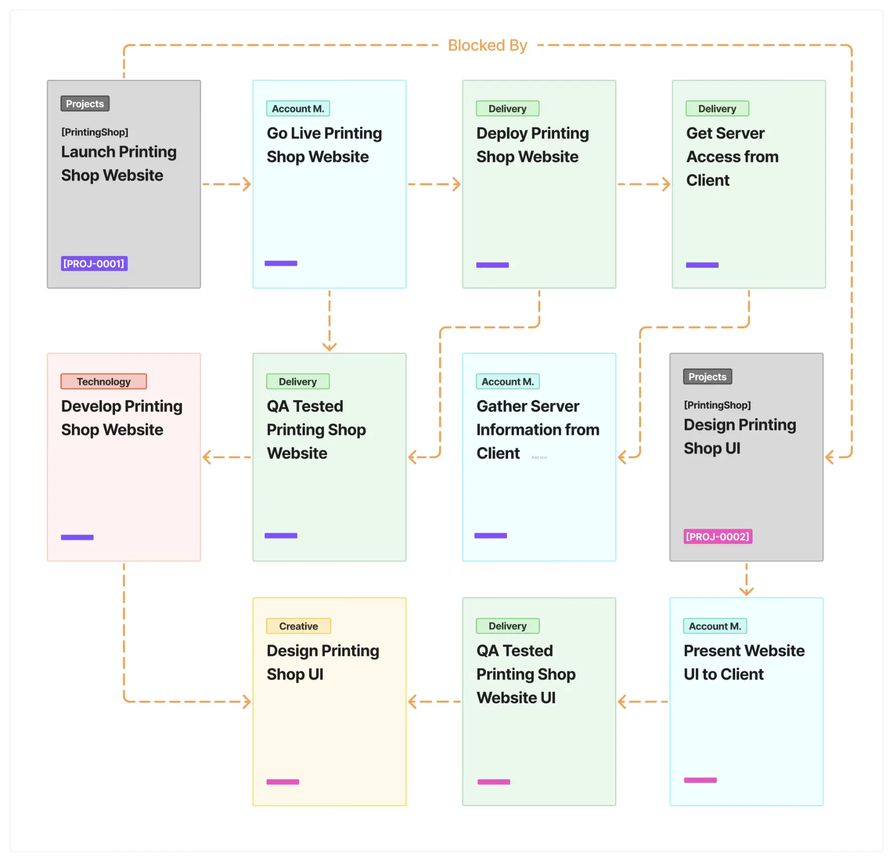 Each card in the Projects Board follows a standardized naming format to ensure consistency and easy tracking across systems: “[PROJ-0000] [ClientName] Project Title”.